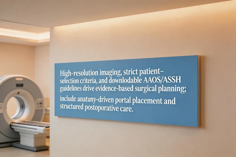 Effective upper‑extremity care begins with high‑resolution pre‑operative imaging—MRI, ultrasound, or CT—to map pathology, confirm that a minimally invasive approach is appropriate, and guide portal placement. Patient‑selection criteria therefore hinge on isolated ligament or tendon lesions, stable fracture fragments, adequate bone quality, and realistic functional goals, as emphasized in the ASHT webinar and multiple ACOEM guidelines.
