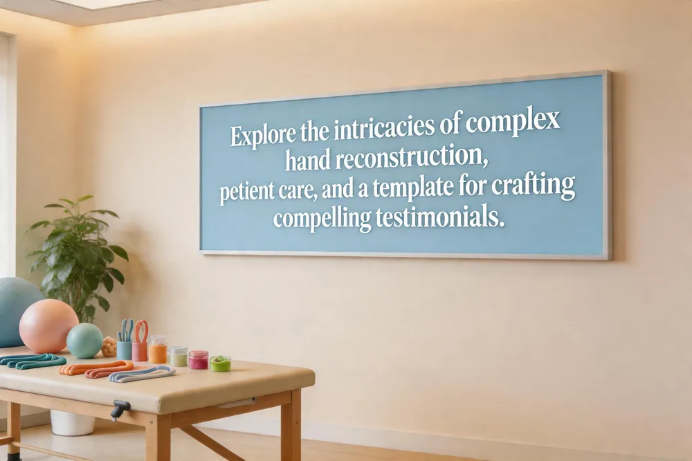 How should I write a patient testimony? Start with a vivid hook describing the moment the patient realized they needed help. Make the patient the star: detail fears, daily challenges, and life impact before treatment. Use sensory details and emotions to narrate the care process, subtly noting Dr. Yu’s expertise and the supportive team. Highlight concrete outcomes—regained function, pain relief, renewed confidence. Conclude with a sincere reflection on how the experience changed the patient’s outlook, reinforcing trust without sounding like a sales pitch.