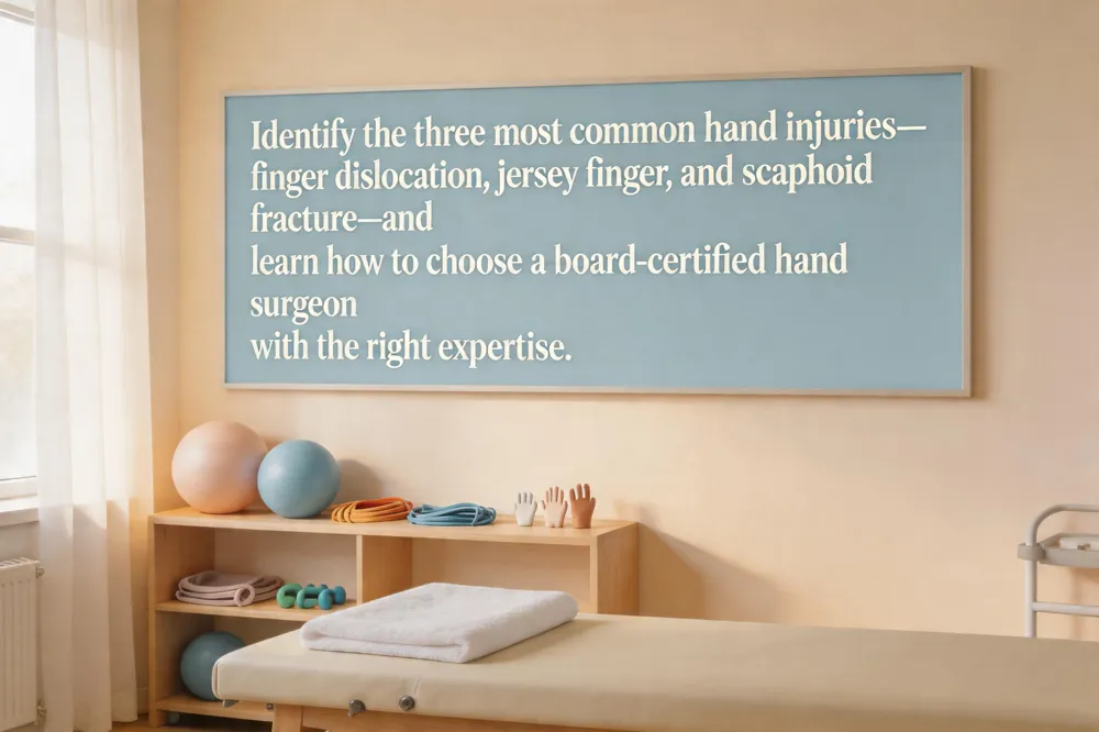 The three most frequently encountered hand injuries are finger dislocation, “jersey finger” (flexor tendon rupture), and scaphoid fracture. Finger dislocation occurs when a force overwhelms the stabilizing ligaments, forcing a joint out of alignment. Jersey finger is a sudden pull that tears the flexor digitorum profundus tendon, often when a jersey is grabbed. A scaphoid fracture typically results from a fall onto an outstretched hand, breaking the small carpal bone near the thumb. These injuries are common among athletes and often require prompt evaluation and treatment.