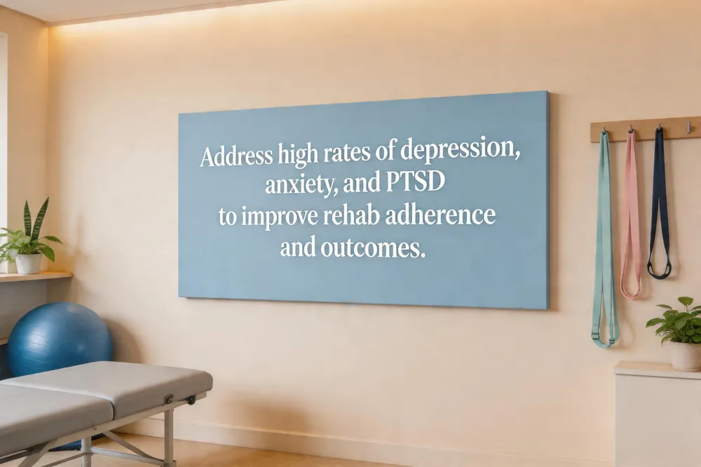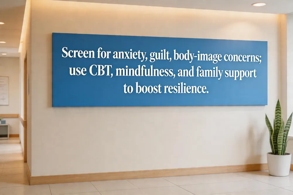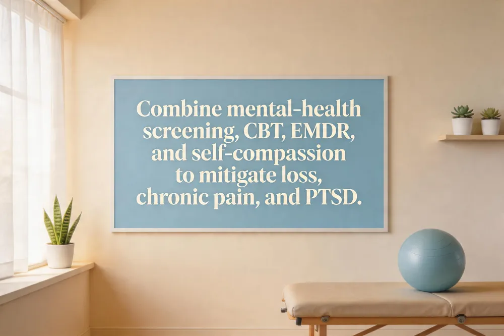 To promote resilience, clinicians should incorporate early screening for anxiety, depression, and PTSD using tools such as the PHQ‑9 or GAD‑7, and refer patients to mental‑health professionals for evidence‑based interventions (e.g., CBT, trauma‑focused CBT, EMDR). Mindfulness‑based stress reduction, guided imagery, and self‑compassion exercises can lower physiological stress and improve pain tolerance. Family involvement, clear communication about treatment plans, and patient education that normalizes emotional reactions further empower patients to engage actively in rehabilitation, accelerate functional recovery, and enhance overall quality of life.