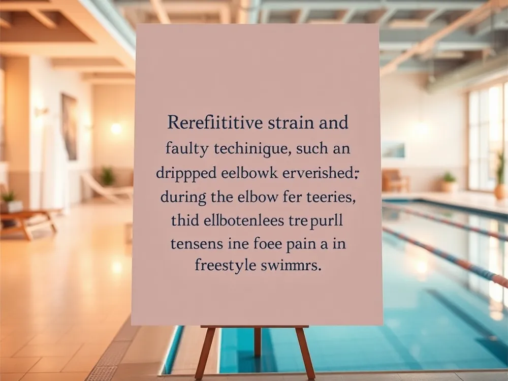 Elbow pain in swimmers, particularly during freestyle, is primarily a result of repetitive microtrauma. The repetitive overhead motion of the stroke, combined with overuse and improper technique, places immense strain on the elbow joint and its surrounding tendons. This strain can lead to specific overuse conditions like swimmer's elbow (medial epicondylitis), where the tendons on the inside of the elbow become inflamed. The problem is widespread, with one study of 311 elite freestyle swimmers finding that 58.84% reported some degree of elbow pain.