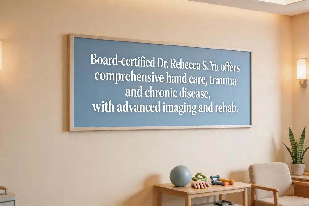Board certification ensures the surgeon has completed an orthopedic residency and a hand‑and‑upper‑extremity fellowship. Dr. Rebecca S. Yu, MD, satisfies these standards and is regarded as a leading Bay Area hand surgeon. Her practice handles acute trauma such as fractures, tendon lacerations, and pediatric injuries, as well as chronic conditions like arthritis, carpal tunnel, trigger finger, and Dupuytren’s contracture. Patients receive a range of treatments—from splinting, therapy, and injections to minimally invasive nerve decompression, tendon repair, and joint reconstruction—customized to each case. The Berkeley clinic offers flexible scheduling, easy access via BART and AC Transit, and parking, simplifying follow‑up visits. High patient satisfaction reflects Dr. Yu’s clear communication and focus on rapid functional recovery. For East Bay residents seeking reliable, comprehensive hand care, Dr. Rebecca S. Yu delivers the expertise, technology, state‑of‑the‑art imaging, modern rehabilitation protocols, and clinical personalized approach that define top‑tier orthopedic hand surgery.