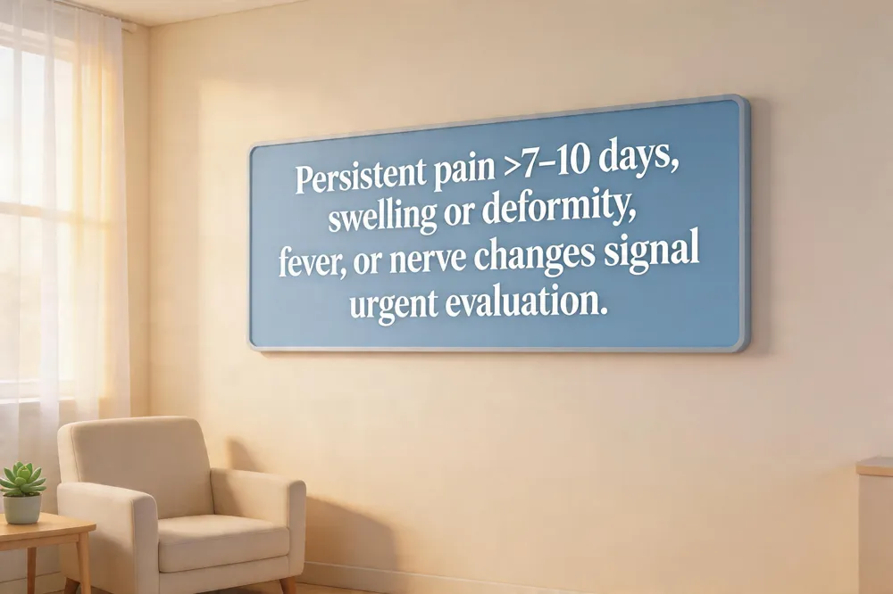 Persistent hand or wrist pain lasting more than 7‑10 days despite rest, ice, or OTC medication is a red‑flag sign that requires specialist evaluation.