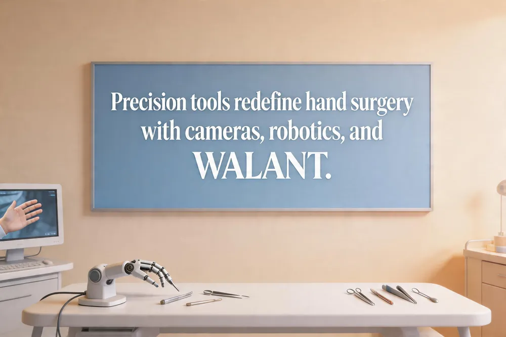 What's new in hand surgery? High‑resolution imaging, WALANT, biologic injections, 3‑D‑printed implants, robotic assistance, augmented reality, and AI‑driven decision support are reshaping the field.