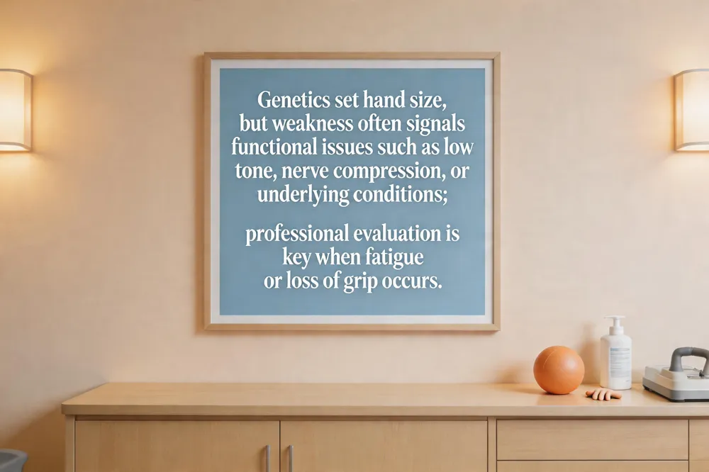 Children’s hand size is mostly a matter of genetics and overall body habitus, so “small” hands often simply reflect normal variation. Hand weakness, however, usually points to a functional issue rather than size alone.