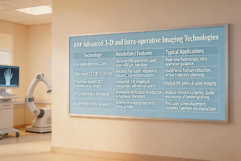 | Intra‑operative 3‑D imaging | Immediate verification of reduction & hardware placement | Reduce revision surgeries, guide microsurgical tendon grafting |